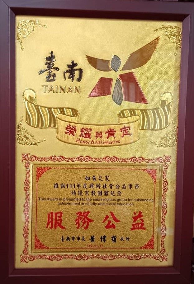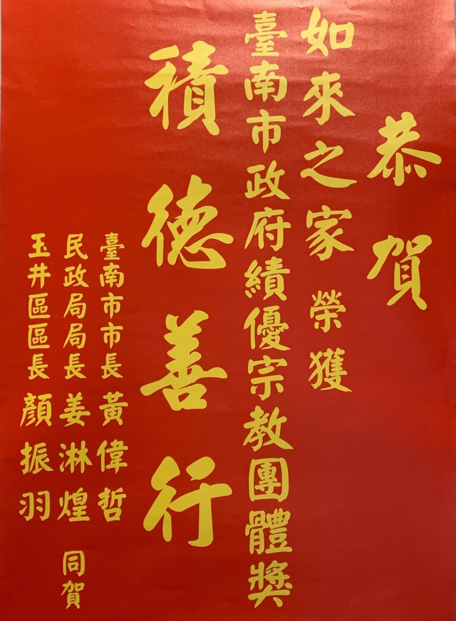 如來之家能再度獲得殊榮,感謝玉井區公所的肯定與推薦,也感謝台南市府給予的獎勵。能盡一份微薄的心力,為社會點亮心燈,匯聚善念,形成正向循環,一直是我們努力的方向。